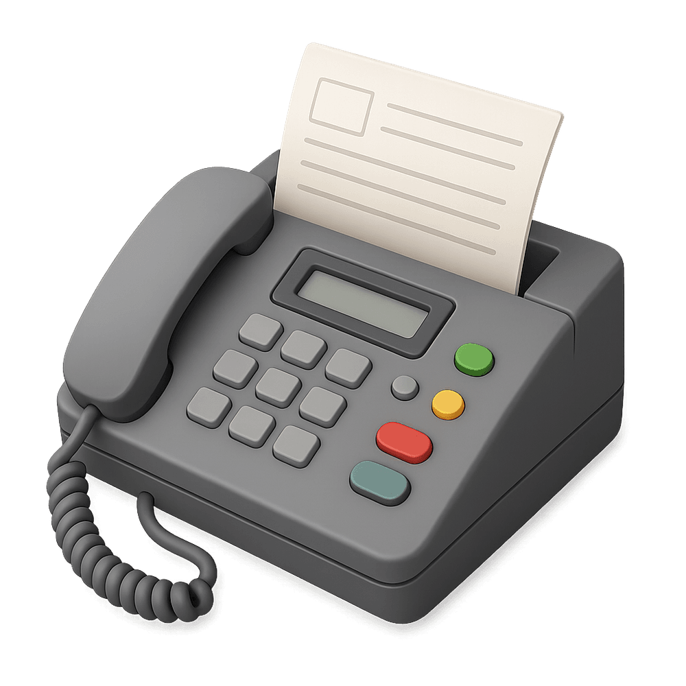 A fax machine is an office device used to send and receive documents over a telephone line by scanning and transmitting printed material as electronic signals. It was widely used for business communication before the rise of email and digital document sharing.