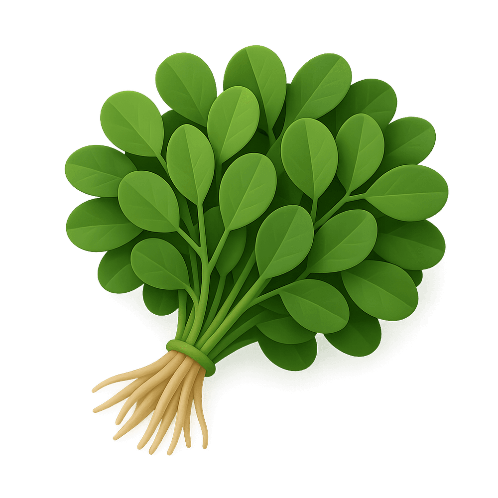 Fenugreek leaves are aromatic, flavorful green leaves commonly used as a culinary herb in South Asian and Middle Eastern cuisines. They add a slightly bitter, nutty taste to dishes and are valued for their nutritional and medicinal properties.