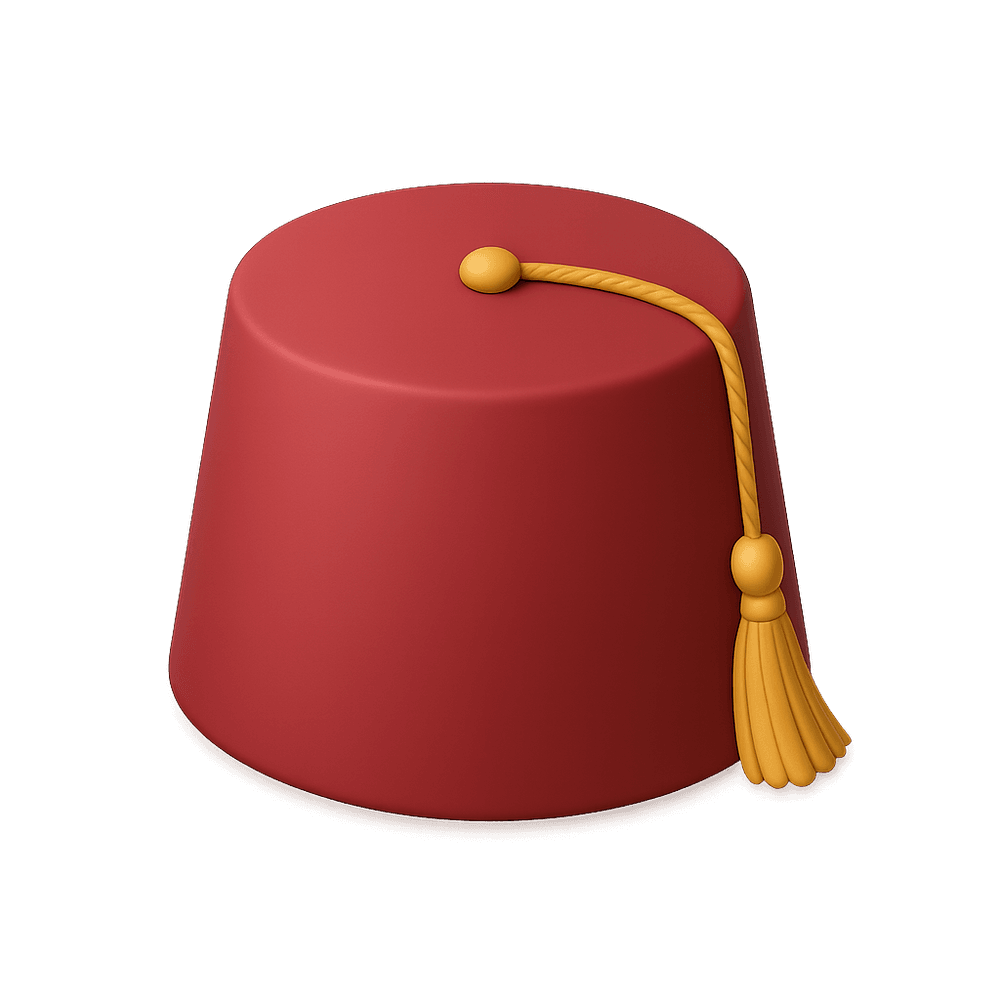 A fez is a traditional, brimless, cylindrical hat, usually made of felt and often red with a tassel. It is commonly associated with Middle Eastern, North African, and Ottoman fashion, and is worn as a cultural and ceremonial accessory.