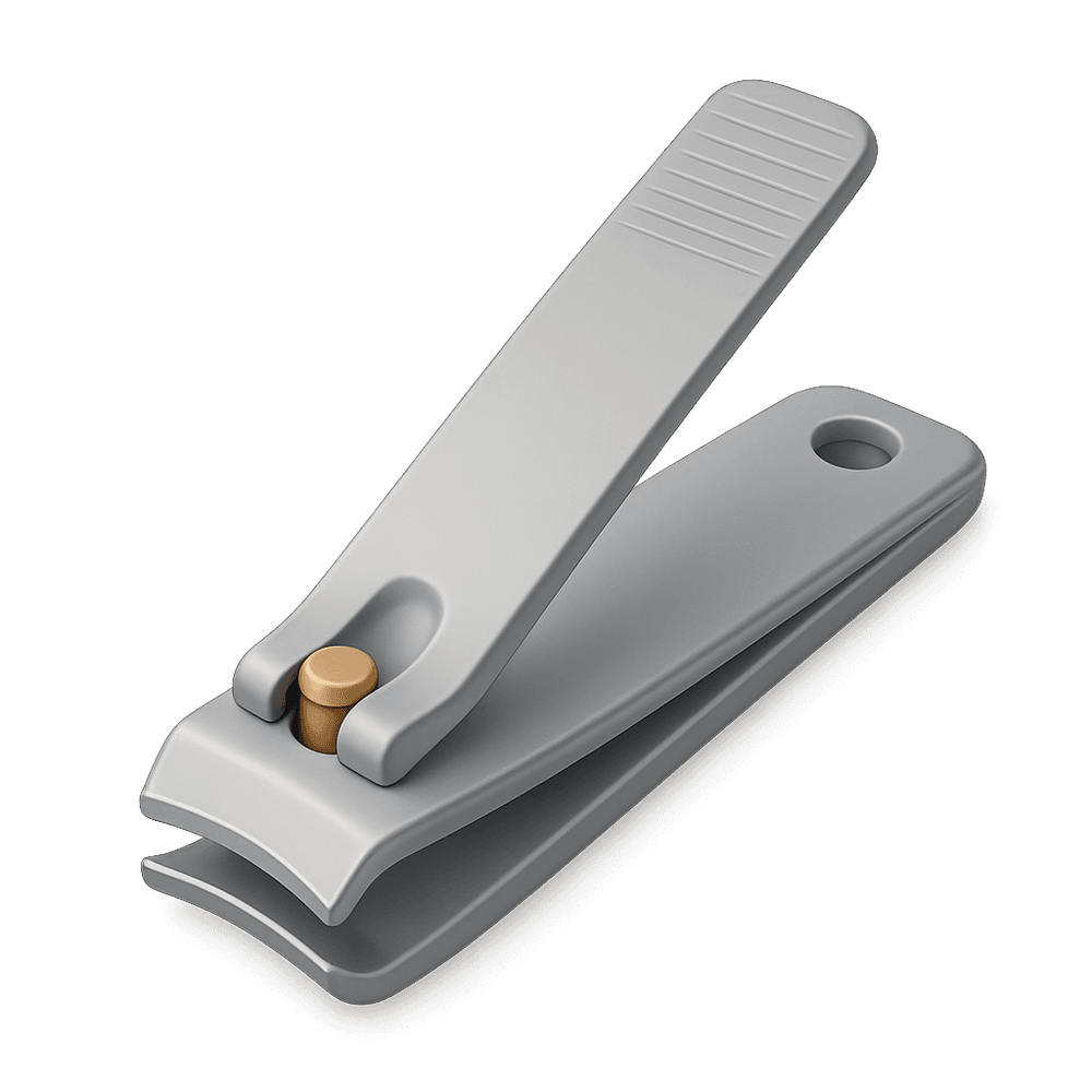 A small handheld tool designed for trimming fingernails. It features a sharp, curved blade and a lever mechanism for precise and easy cutting, making it an essential item for personal grooming and hygiene.