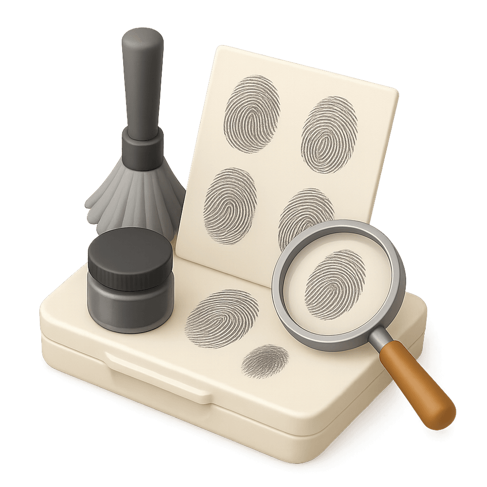 A fingerprint kit is a set of tools used to collect, analyze, and record fingerprints, commonly used in forensic investigations, law enforcement, and security work.