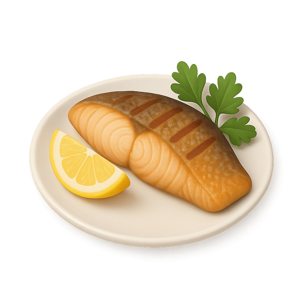 A basic food item consisting of fish that has been prepared by cooking methods such as baking, grilling, frying, or steaming. Cooked fish is a common source of protein in many cuisines around the world and can be served as a main dish or as part of other recipes.