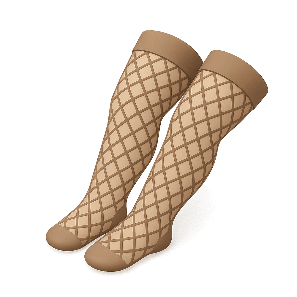 Fishnet stockings are a type of hosiery characterized by an open, diamond-shaped knit pattern. Popular in fashion for their bold, edgy, and sometimes provocative style, they are often worn as a statement accessory or as part of costumes.