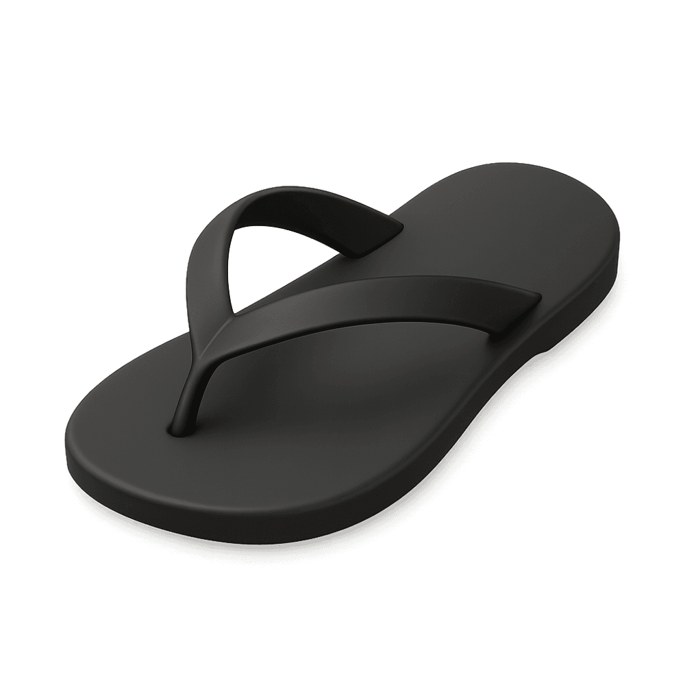 A flip-flop is a lightweight, open-toed sandal typically made with a flat sole and a Y-shaped strap that passes between the first and second toes. Popular for casual wear, especially in warm weather, flip-flops are easy to slip on and off, making them ideal for the beach, pool, or everyday summer activities.
