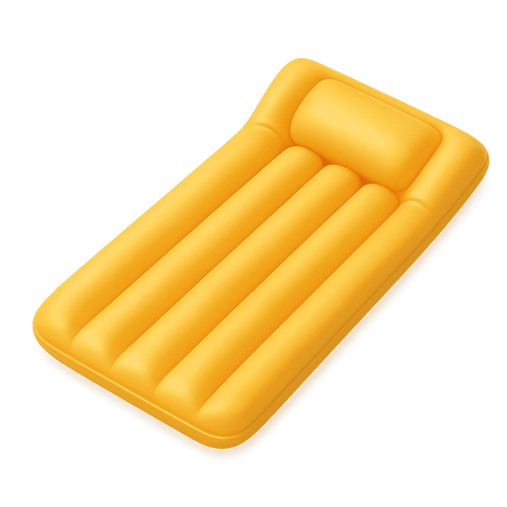 A floating lilo is an inflatable mattress designed for relaxing and lounging on the surface of water, commonly used in pools or at the beach for leisure and fun.