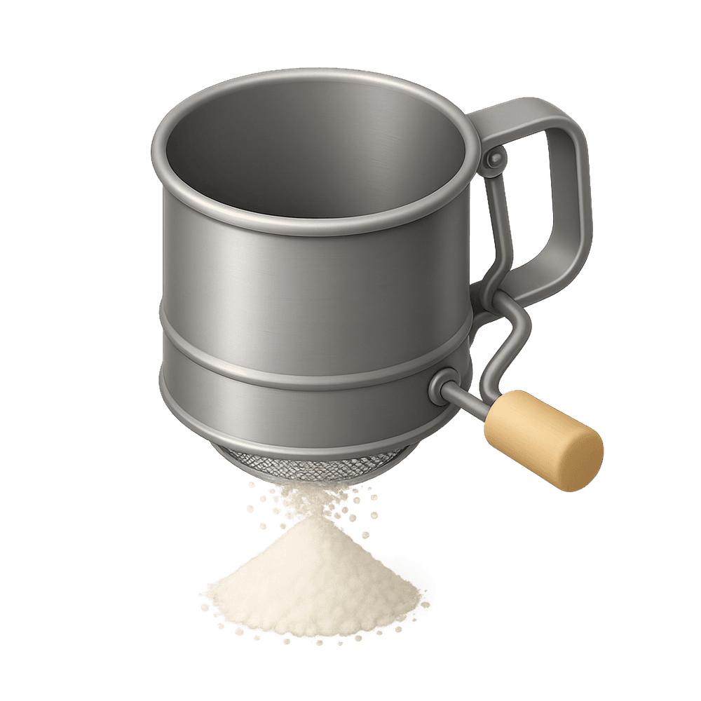 A flour sifter is a kitchen utensil used to aerate and remove lumps from flour, ensuring a smooth and even texture for baking and cooking.