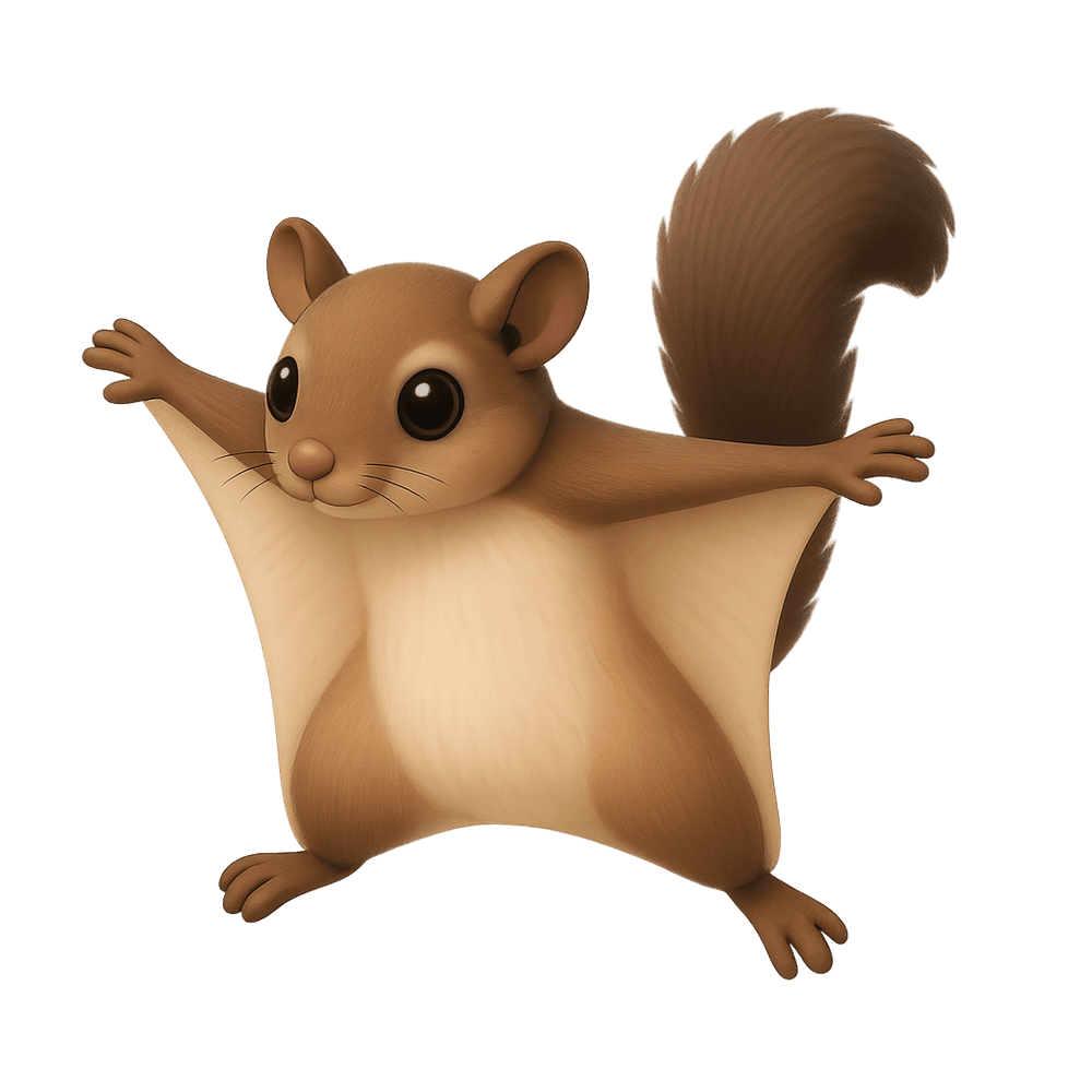 A small, nocturnal mammal known for its ability to glide between trees using a membrane of skin between its limbs. Flying squirrels are agile, tree-dwelling creatures found in forests across North America, Europe, and Asia.