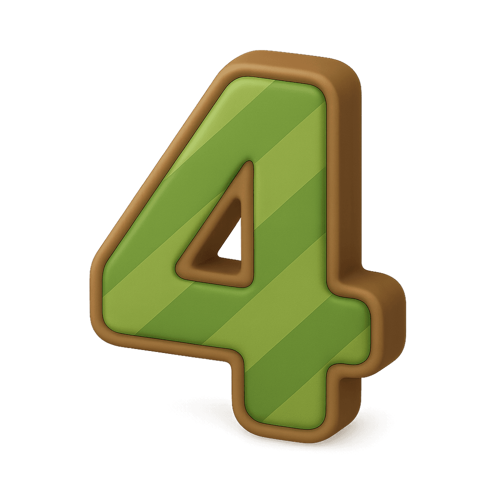 The number four, commonly used as a numeral or symbol in interfaces, signage, and digital displays. Represents quantity, order, or value in various contexts.