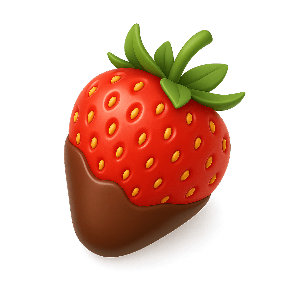 A fresh strawberry dipped in rich, smooth chocolate, combining the natural sweetness of fruit with the indulgence of chocolate. Popular as a dessert or sweet snack.