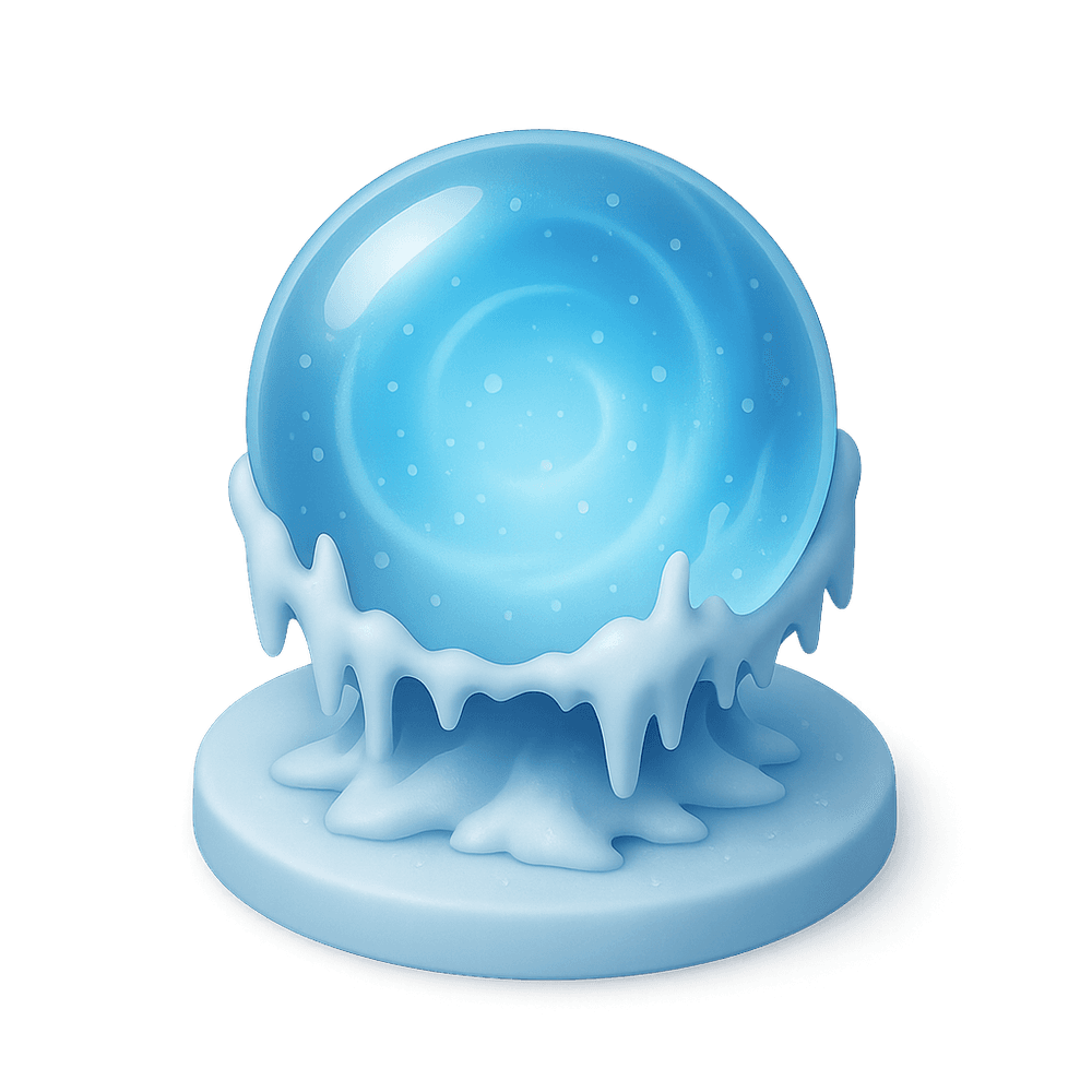 A mystical, glowing sphere imbued with the power of frost. The Frost Orb radiates a chilling aura, capable of freezing objects or casting icy spells. Often sought after by wizards and adventurers in fantasy realms.