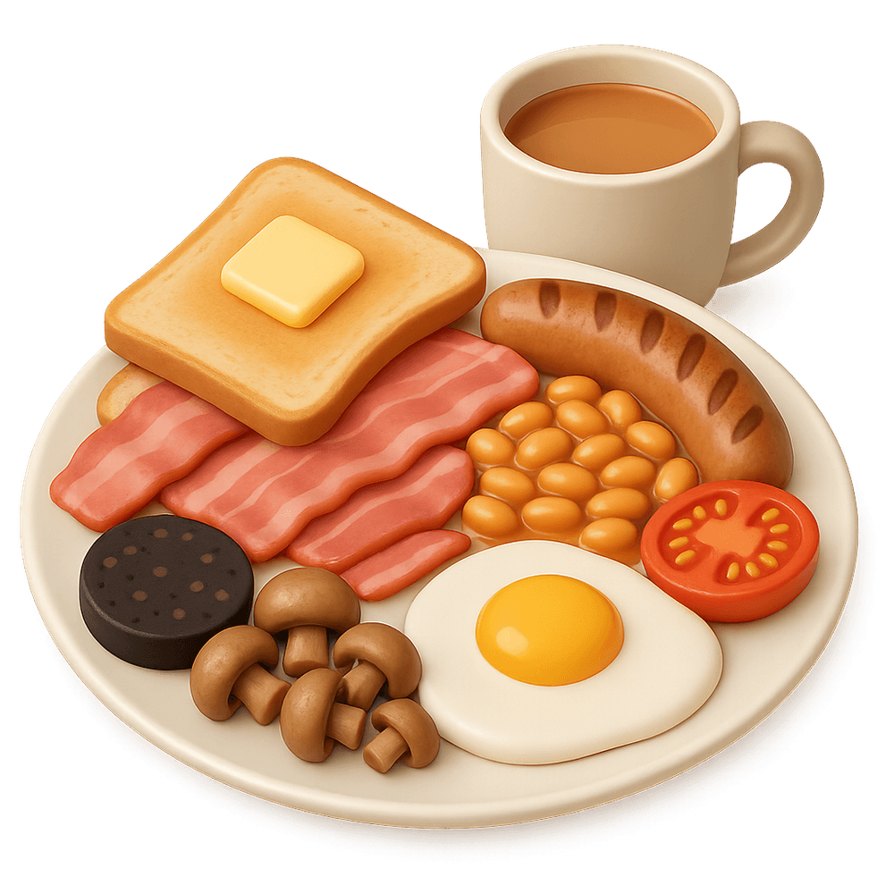 A Full English Plate is a traditional British breakfast featuring a hearty combination of foods such as eggs, bacon, sausages, baked beans, grilled tomatoes, mushrooms, toast, and sometimes black pudding. It is known for its variety and substantial portion size, making it a classic morning meal in the UK.