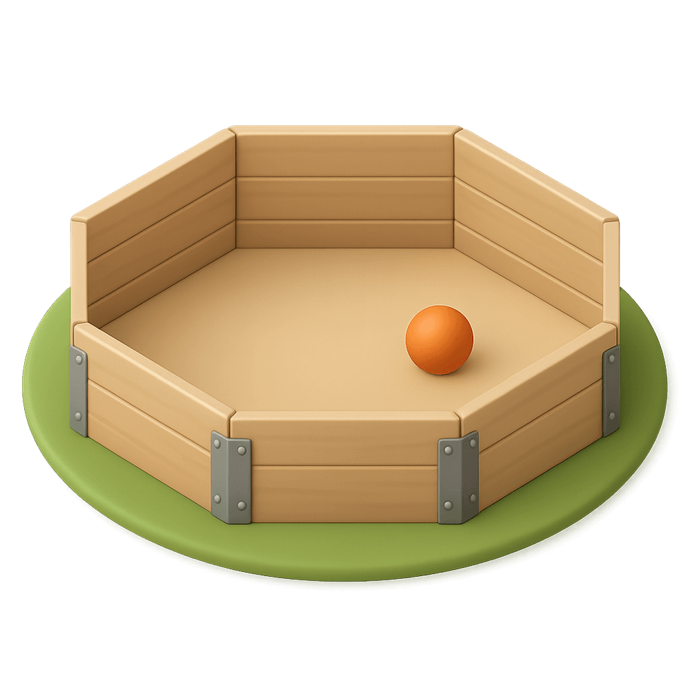 A Gaga Pit is an enclosed, often octagonal, structure used for playing Gaga Ball, a fast-paced, dodgeball-like game popular in schools and camps. Players try to eliminate each other by hitting a ball to strike opponents below the knees.