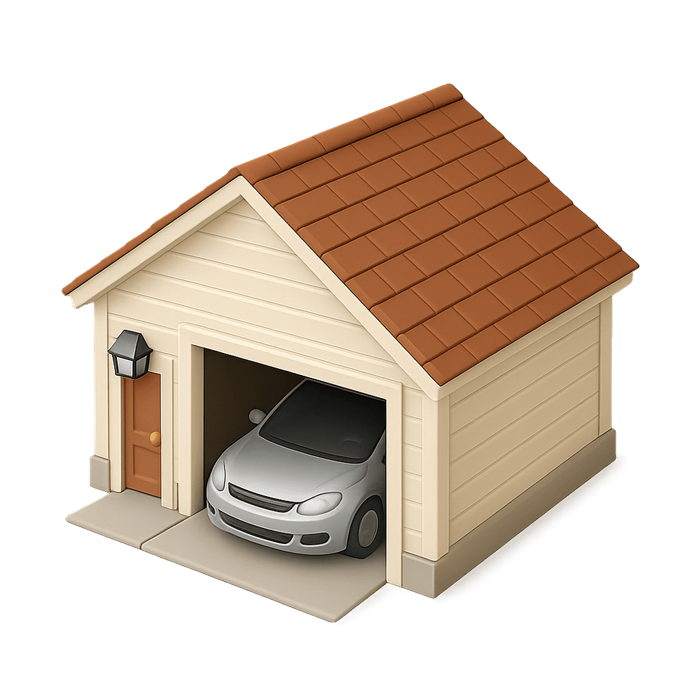 A garage is a covered structure designed for parking vehicles and often used for storage, maintenance, or as a workspace. It is typically attached to or near a house or building.