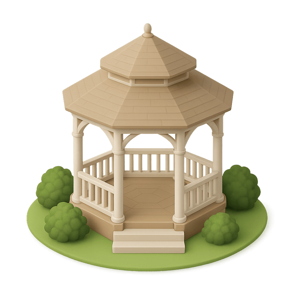 A gazebo is a freestanding, open-sided structure with a roof, often found in gardens, parks, or public spaces. It provides shade, shelter, and a place to relax or gather, making it a popular feature in outdoor settings.