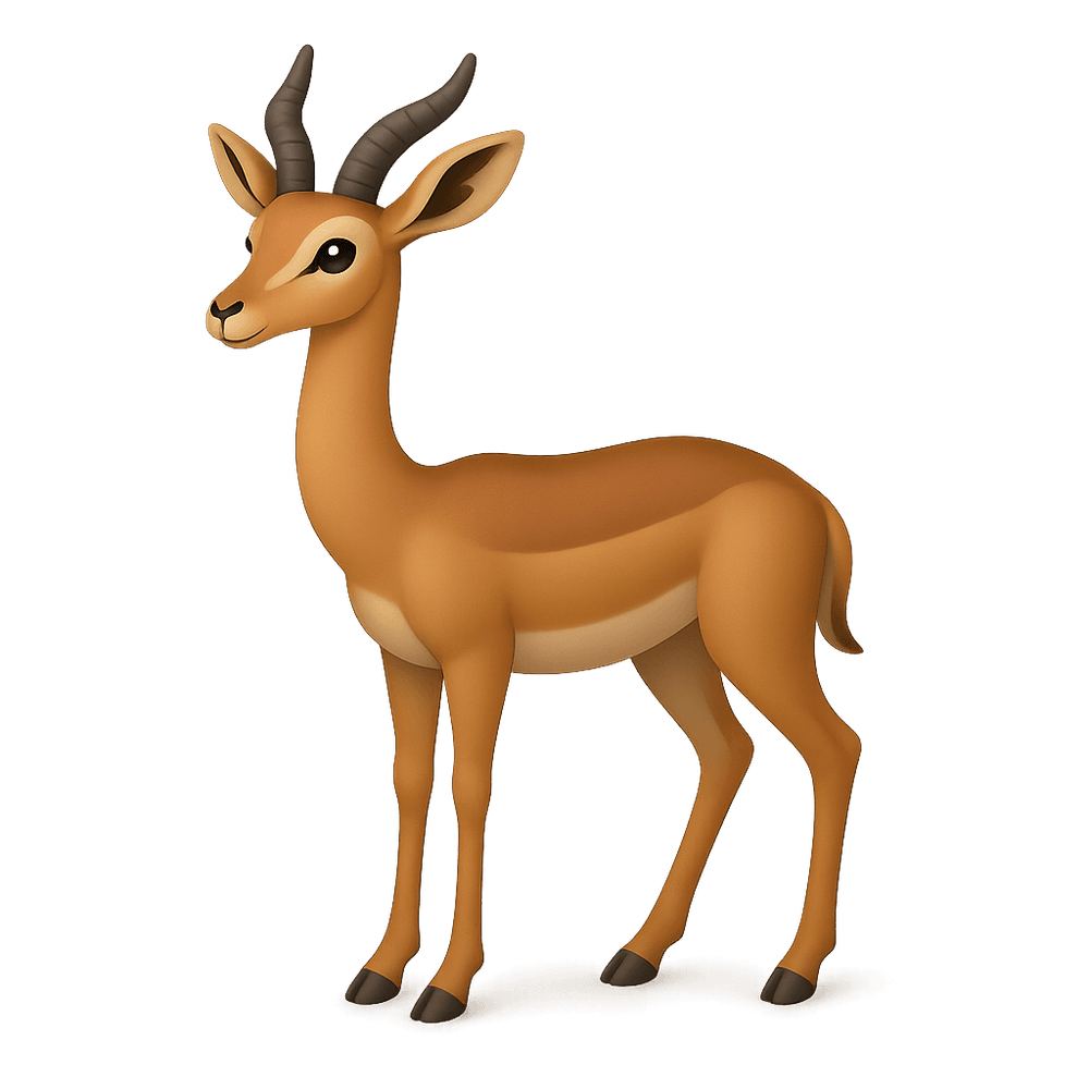The gerenuk is a long-necked species of antelope native to the dry thornbush and desert regions of East Africa. Known for its slender build and ability to stand on its hind legs to reach high foliage, the gerenuk is a unique herbivore well-adapted to arid environments.