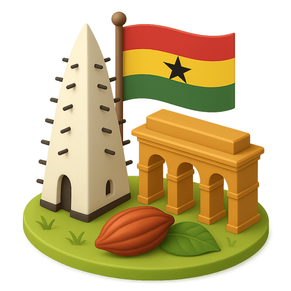 Ghana is a country located along the Gulf of Guinea and the Atlantic Ocean, in West Africa. Known for its diverse wildlife, rich history, and vibrant culture, Ghana is famous for its gold resources, cocoa production, and historic sites such as Cape Coast Castle. The capital city is Accra.
