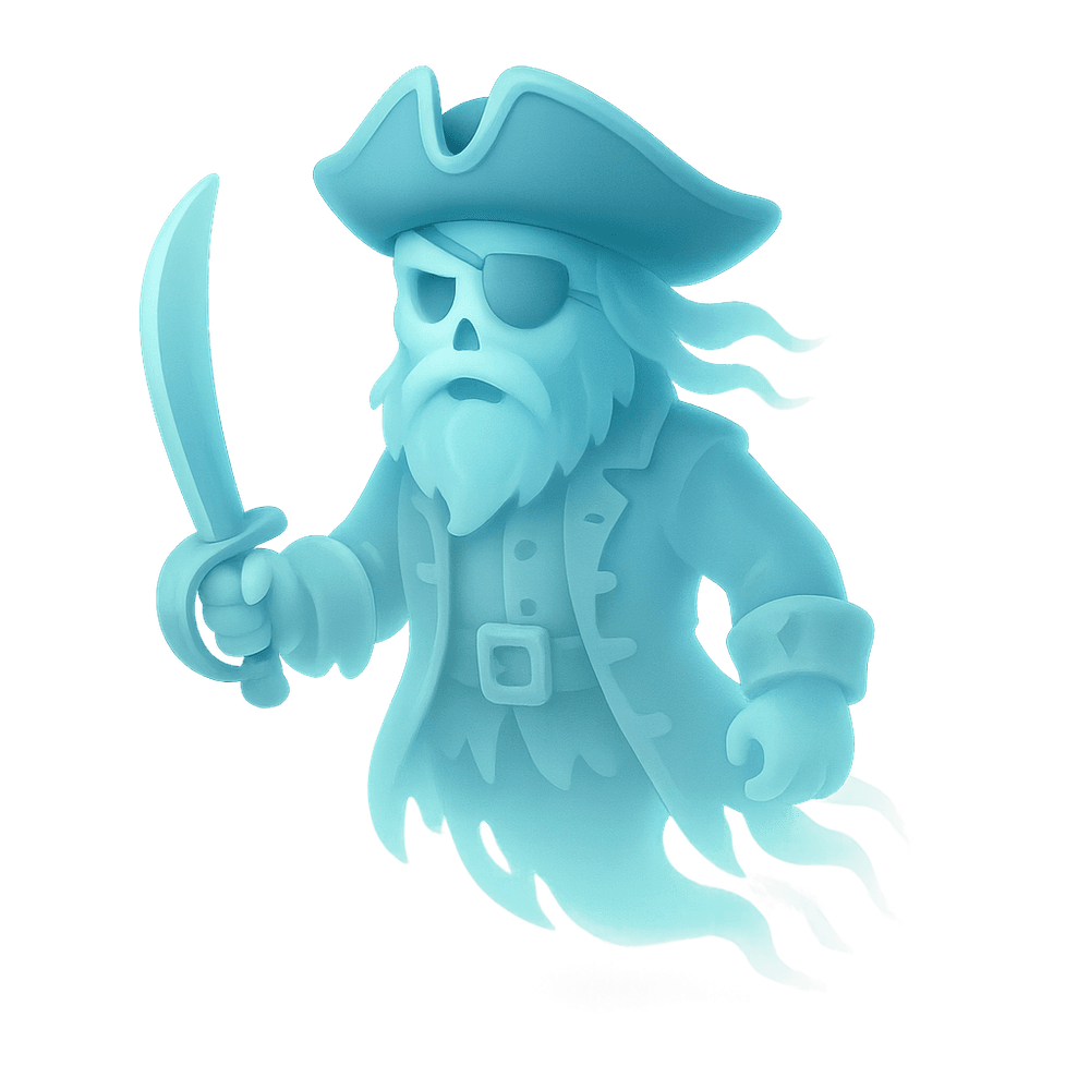A spectral pirate who haunts the seas, often depicted as a ghostly figure with tattered clothes, a cutlass, and a thirst for adventure or revenge. Ghost Pirates are common in fantasy tales and legends, blending the supernatural with swashbuckling lore.