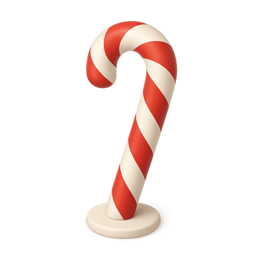 A Giant Candy Cane is an oversized, decorative version of the classic holiday treat, often used as a festive prop or playful centerpiece at parties, events, or themed displays. Its whimsical size and bright stripes make it a fun addition to entertainment and leisure settings.
