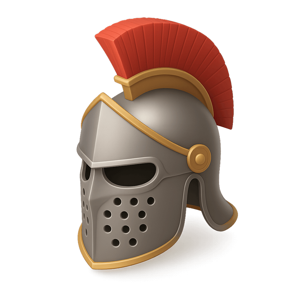 A Gladiator Helmet is a protective headgear worn by ancient Roman gladiators during combat in the arena. It is characterized by its sturdy metal construction, face guard, and decorative elements, symbolizing both martial prowess and cultural heritage.