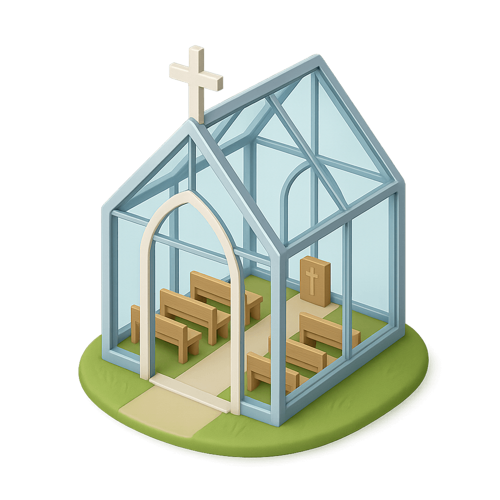 A Glass Chapel is a modern architectural structure, often used for weddings and ceremonies, featuring transparent glass walls that offer panoramic views of the surrounding landscape. Its design emphasizes light, openness, and a connection to nature.