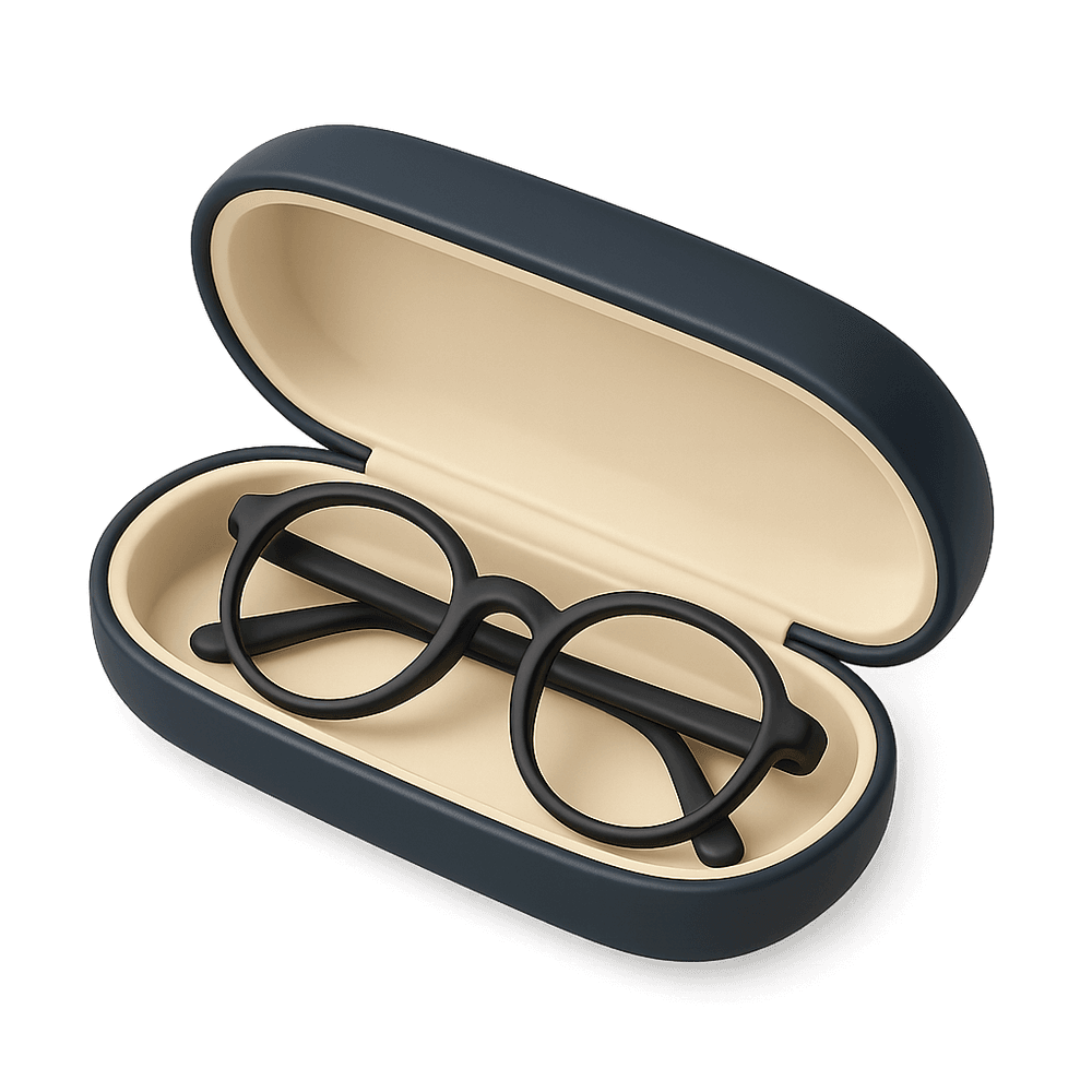 A glasses case is a protective container designed to store and safeguard eyeglasses or sunglasses from scratches, dust, and damage when not in use. It is a common everyday accessory for anyone who wears glasses.