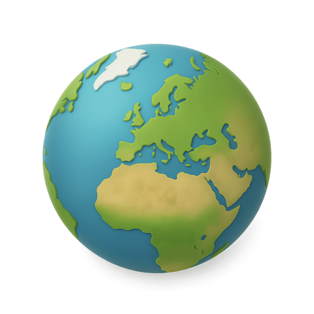 A three-dimensional scale model of Earth, used for educational purposes, geographic reference, and as a decorative object. It displays continents, oceans, and countries, helping users visualize the planet's features and understand global geography.