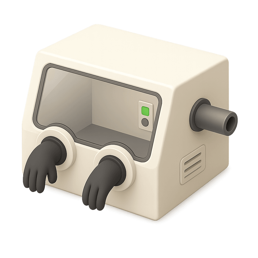 A glovebox (isolation cabinet) is a sealed container used to handle hazardous or sensitive materials in a controlled environment. It allows users to manipulate objects inside the box using built-in gloves, protecting both the user and the materials from contamination.