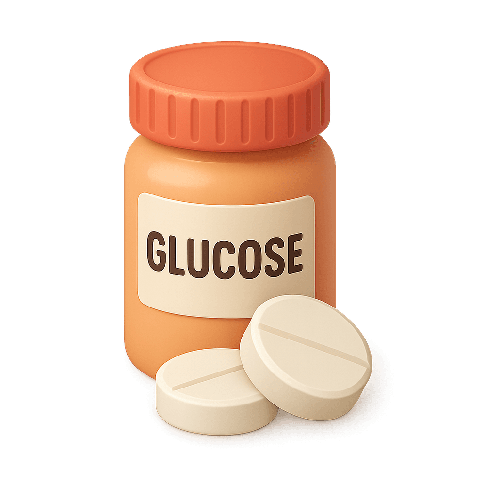 Glucose tablets are chewable supplements designed to quickly raise blood sugar levels, commonly used by people with diabetes to treat hypoglycemia (low blood sugar). They provide a fast-acting source of energy and are easy to carry for on-the-go use.