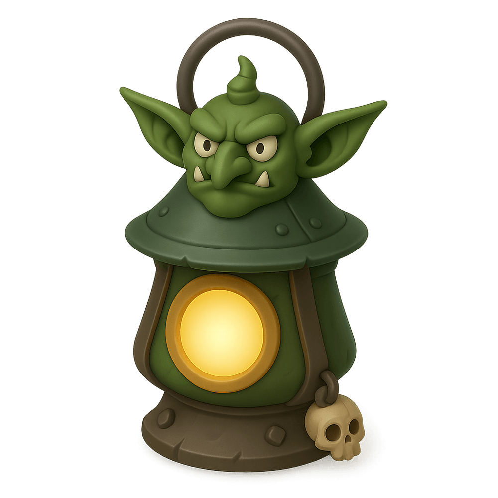 A Goblin Lantern is a whimsical, magical lantern crafted by goblins, often featuring quirky designs and an eerie, enchanting glow. Used to light the way in fantastical realms, it is both a source of illumination and a symbol of goblin ingenuity.