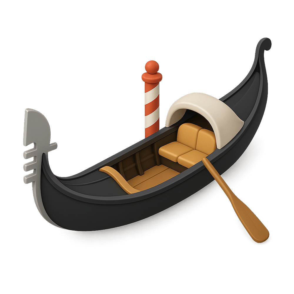 A gondola is a traditional, flat-bottomed Venetian rowing boat, well known for its use in the canals of Venice, Italy. It is propelled by a gondolier using a single oar and is often used for transport and tourism.
