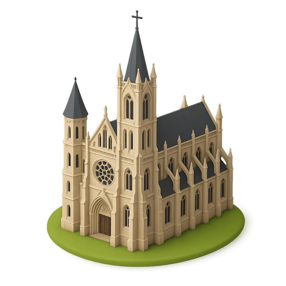 A Gothic Cathedral is a grand, historic structure characterized by pointed arches, ribbed vaults, and flying buttresses. These cathedrals, often found in Europe, are renowned for their intricate stained glass windows and towering spires, serving as both places of worship and architectural landmarks.