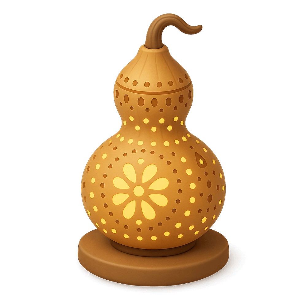 A gourd lamp is a decorative light fixture crafted from a dried gourd, often intricately carved or painted. Popular as a creative hobby, these lamps add a warm, artistic touch to home decor.