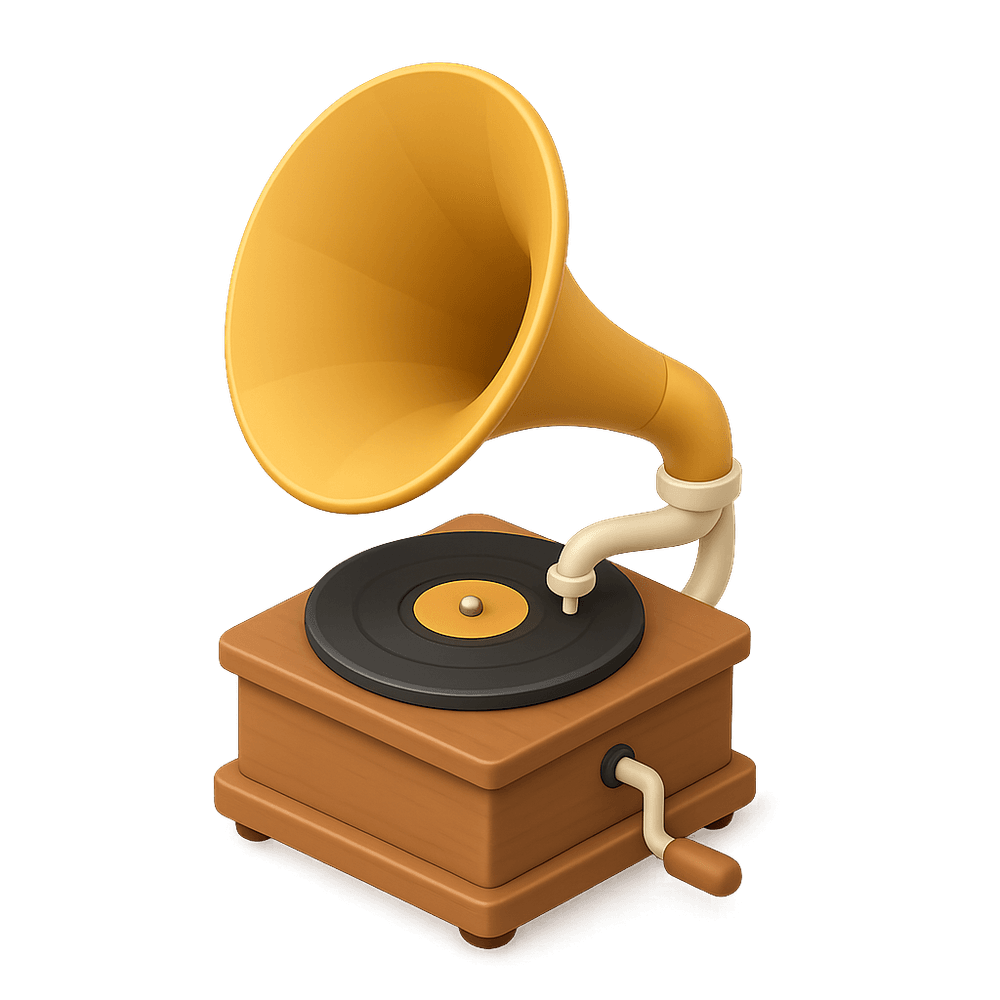 A gramophone is a vintage mechanical device used to play recorded music from vinyl records, popular in the late 19th and early 20th centuries. It features a large horn for sound amplification and is an iconic symbol of early audio technology.
