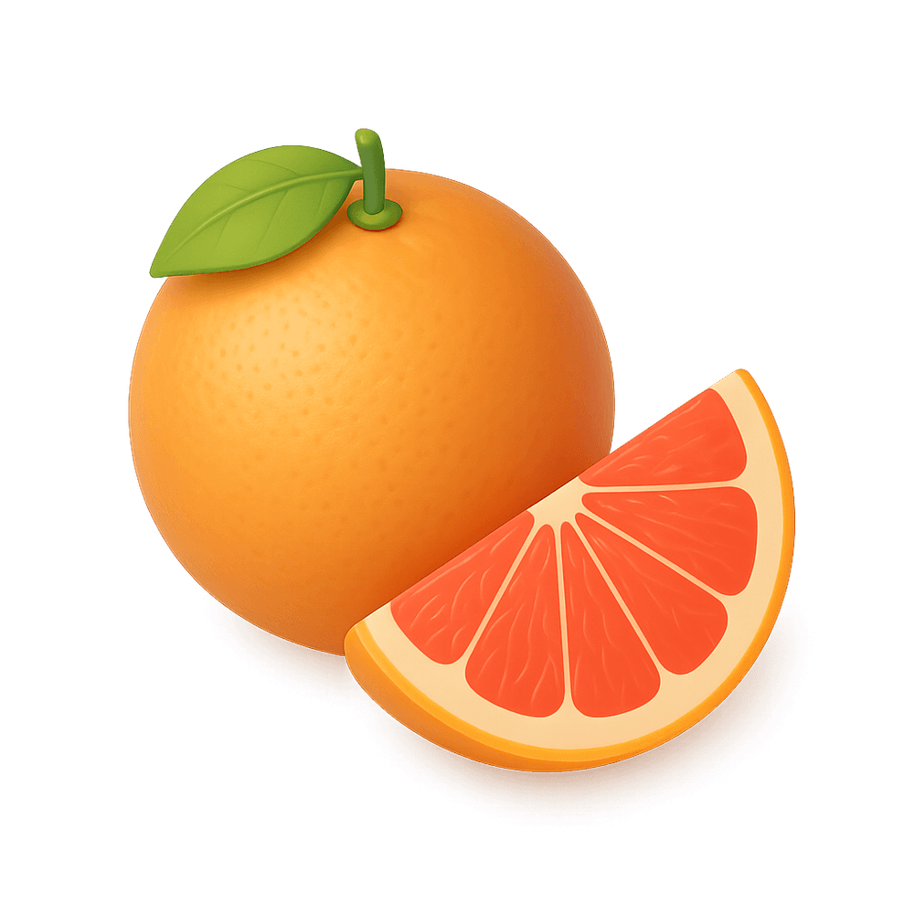 A large, round citrus fruit with a thick, yellow-pink rind and juicy, slightly tart flesh. Often eaten fresh, juiced, or used in salads and desserts.