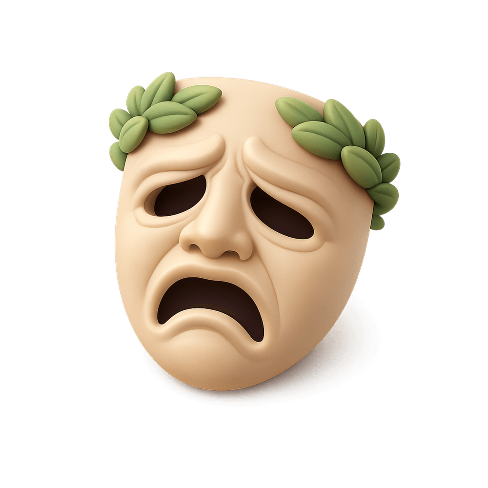 A Greek Tragedy Mask is a traditional theatrical mask used in ancient Greek drama, especially in tragic plays. These masks were crafted to depict exaggerated emotions and characters, allowing actors to portray various roles and amplify their expressions to large audiences. They are iconic symbols of classical theater and cultural heritage.
