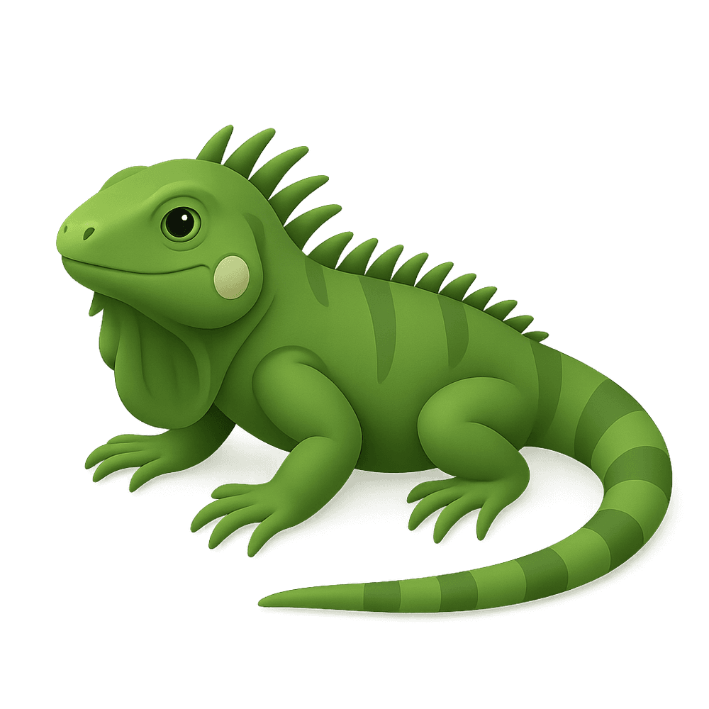 The Green Iguana is a large, arboreal lizard native to Central and South America. Known for its vibrant green coloration and impressive tail, it is a herbivorous reptile often found in rainforests and near water sources. Green Iguanas are popular as exotic pets and play an important role in their natural ecosystems.