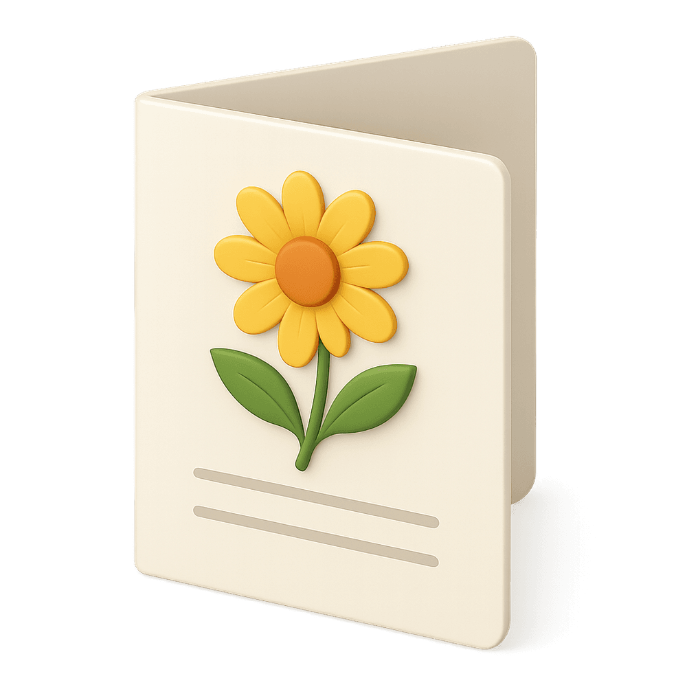 A greeting card is a decorative card, often with a message or illustration, given to express sentiments such as congratulations, thanks, or well wishes for various occasions. Commonly exchanged in everyday life, greeting cards help people connect and celebrate special moments.