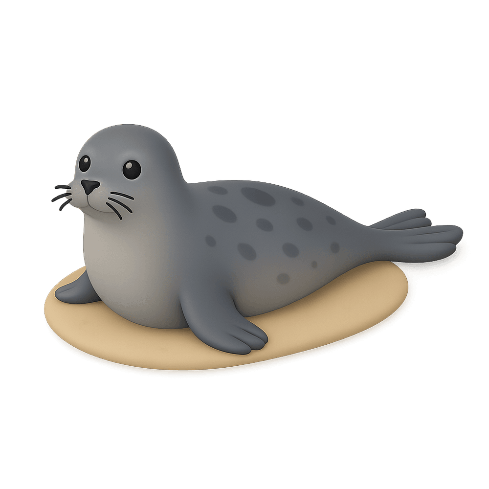 The grey seal is a large marine mammal found along the coasts of the North Atlantic Ocean. Recognizable by its long nose and mottled grey fur, it is an excellent swimmer and a skilled predator, feeding mainly on fish and squid.