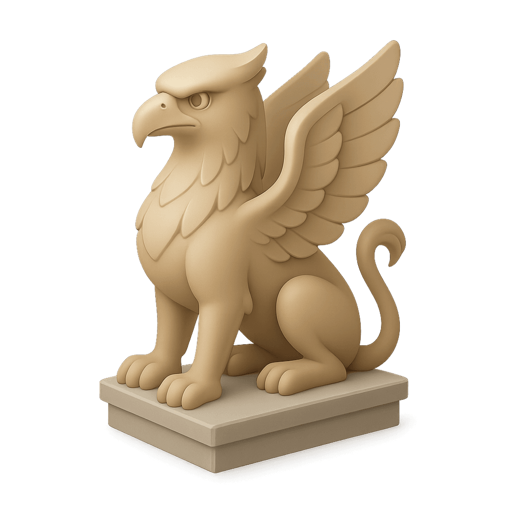 A majestic statue depicting a griffin, a legendary creature with the body of a lion and the head and wings of an eagle. Often found in fantasy settings, this statue symbolizes strength, guardianship, and imagination.
