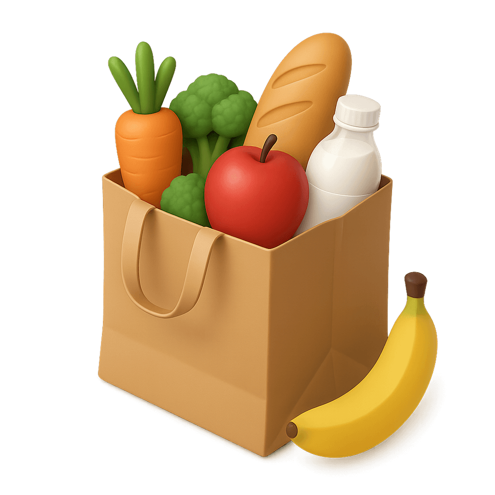 A grocery bag is a reusable or disposable bag used to carry groceries and other everyday items from stores to home. It is commonly made from plastic, paper, or fabric and is an essential item for shopping and transporting goods.