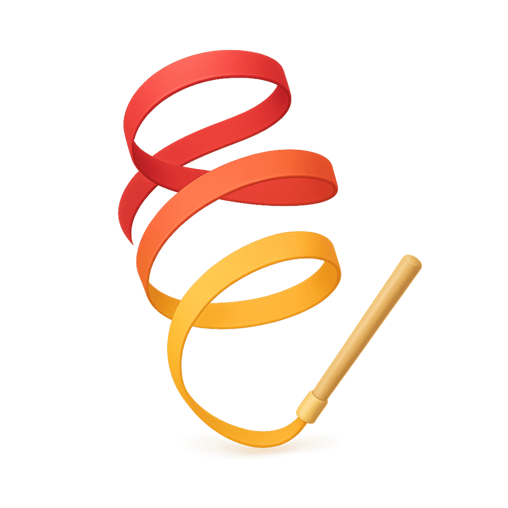 A gymnastics ribbon is a long, colorful strip of fabric attached to a stick, used in rhythmic gymnastics routines to create flowing patterns and shapes in the air. It is an essential piece of equipment for performances and competitions, emphasizing grace, coordination, and artistry.