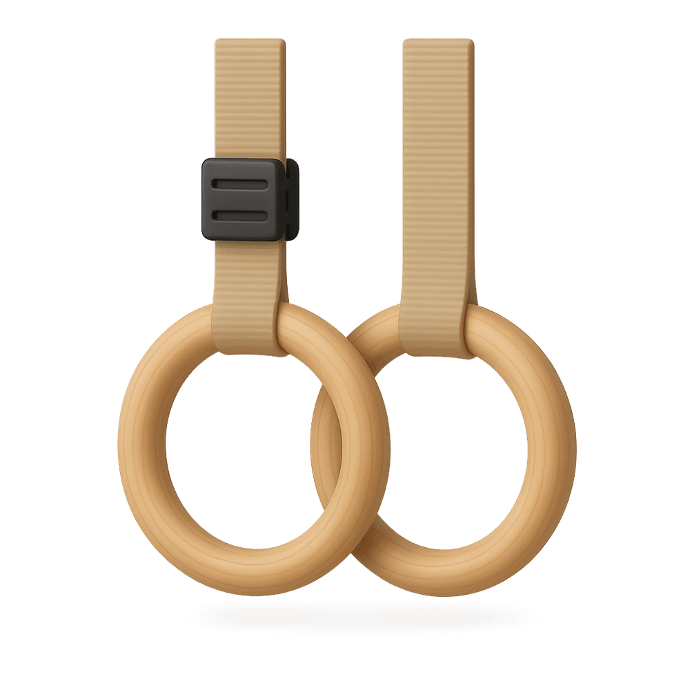 Gymnastics rings are circular exercise equipment, typically made of wood or plastic, suspended from straps. Used in gymnastics and fitness training, they help build strength, stability, and coordination through bodyweight exercises.