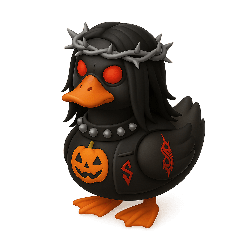A playful rubber duck dressed in a Halloween costume, perfect for seasonal decoration or bath-time fun. Adds a festive touch to entertainment and leisure activities.