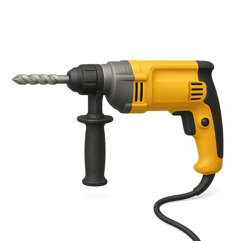 A hammer drill is a power tool used primarily in construction and renovation work. It combines rotary drilling with a hammering action, making it ideal for drilling into hard materials like concrete, brick, and stone. Unlike a regular drill, the hammer drill's percussive motion helps break up tough surfaces, allowing for faster and more efficient drilling. It is a staple tool for construction workers, electricians, and plumbers.