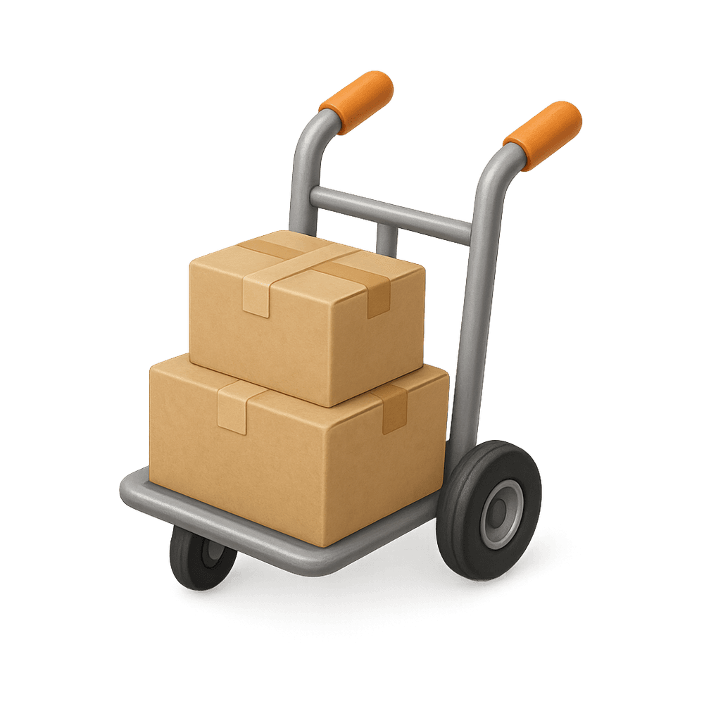 A simple, two-wheeled vehicle designed to be pushed or pulled by a person, commonly used for transporting goods over short distances. Handcarts are often seen in markets, warehouses, and construction sites.