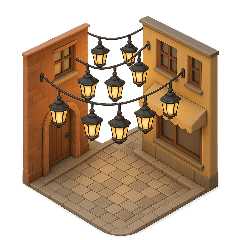 Hanging Lantern Alley is a charming, narrow street known for its rows of suspended lanterns that create a magical, illuminated atmosphere. Often found in historic or cultural districts, it serves as a picturesque destination for visitors and locals alike.