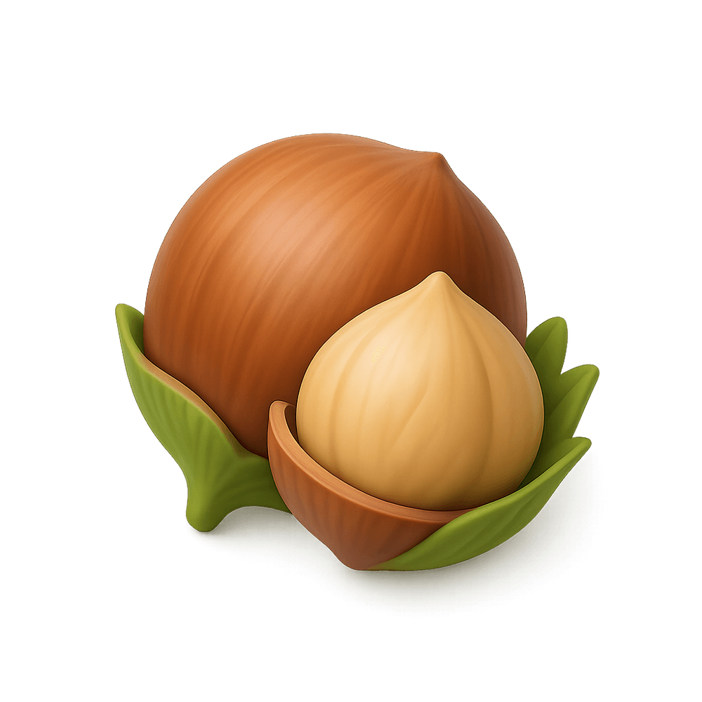 Hazelnut is an edible nut from the hazel tree, commonly used in snacks, desserts, and spreads. It is known for its rich, slightly sweet flavor and nutritional value, including healthy fats and protein.