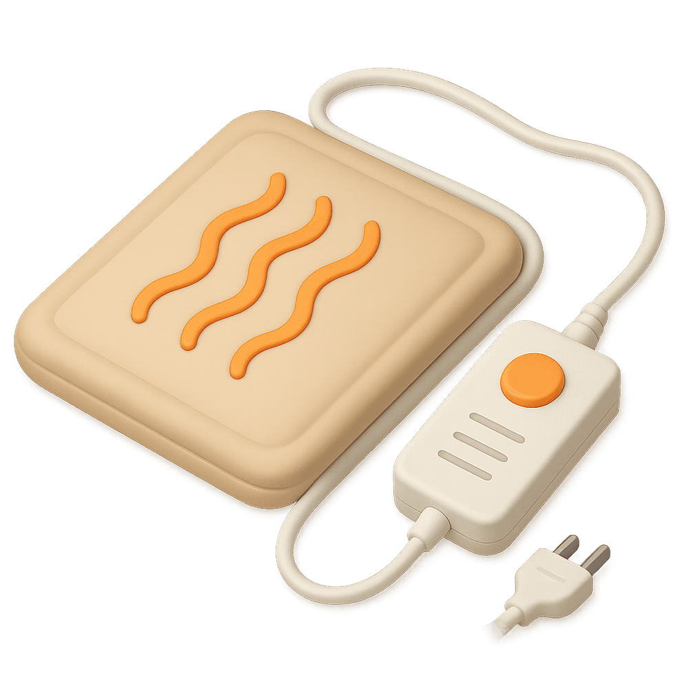 A heating pad is a portable device that provides warmth to specific areas of the body, often used to relieve muscle pain, cramps, or stiffness. It is commonly used in health and wellness routines for comfort and therapeutic benefits.
