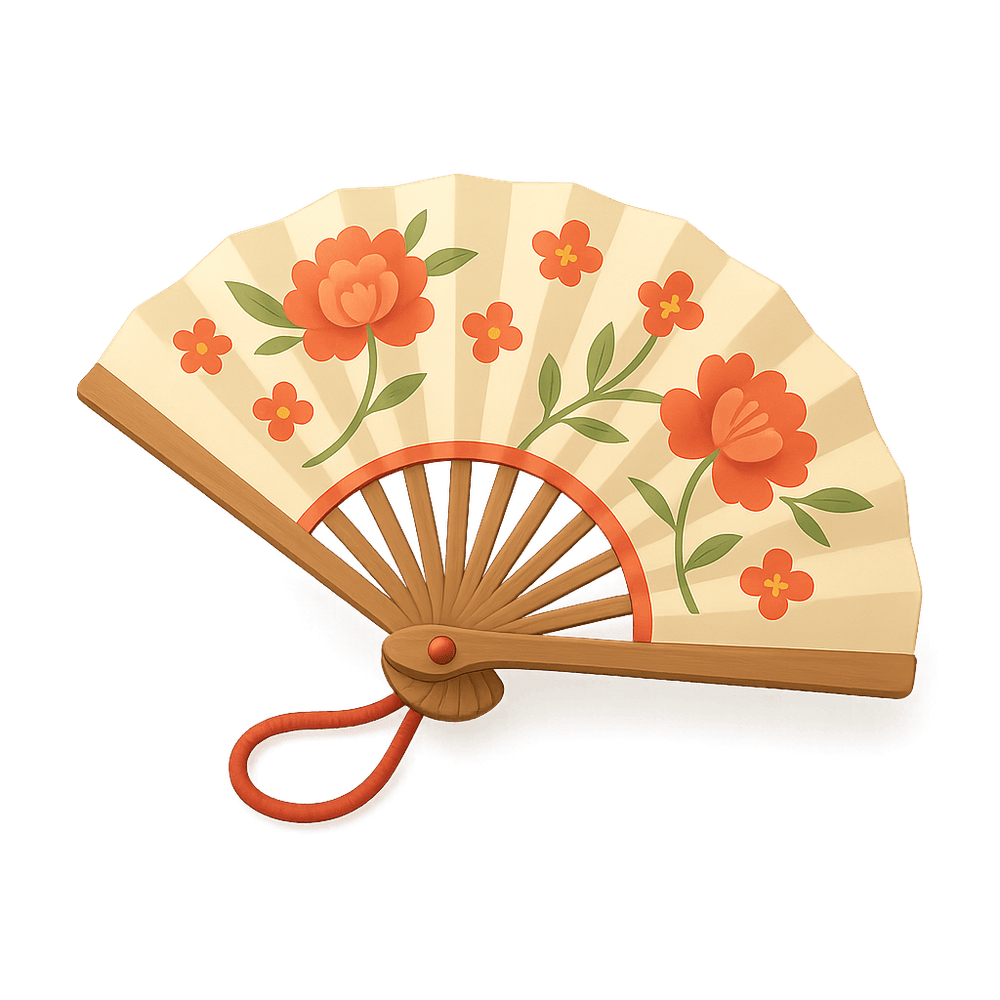 A decorative folding fan used by nobles during Japan's Heian period, symbolizing elegance and status in courtly life. Often crafted from paper and wood, these fans featured intricate designs and were important accessories in traditional Japanese culture.