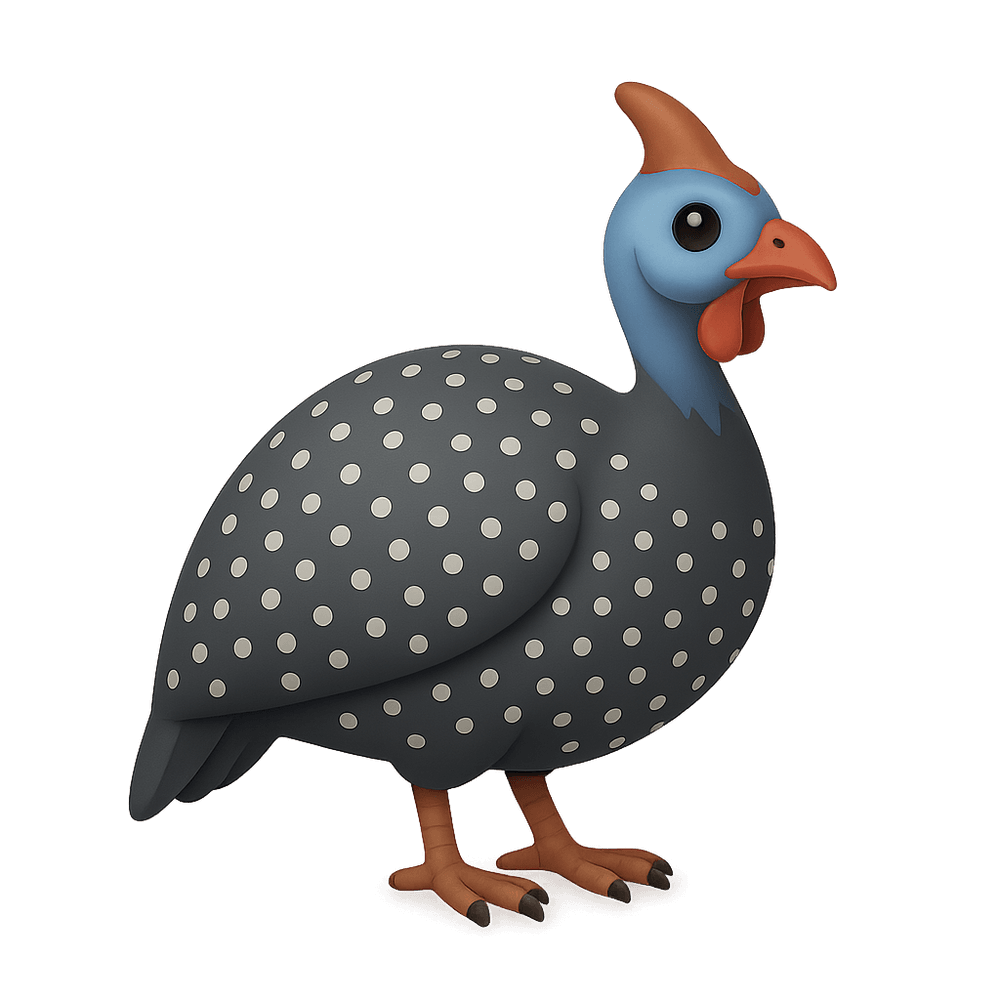 The Helmeted Guineafowl is a large, ground-dwelling bird native to Africa, easily recognized by its distinctive featherless head and spotted plumage. It is known for its social behavior, loud calls, and importance in pest control and agriculture.